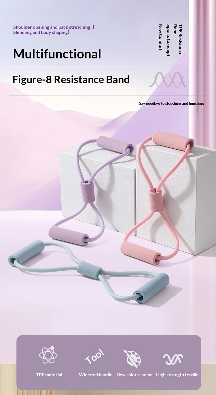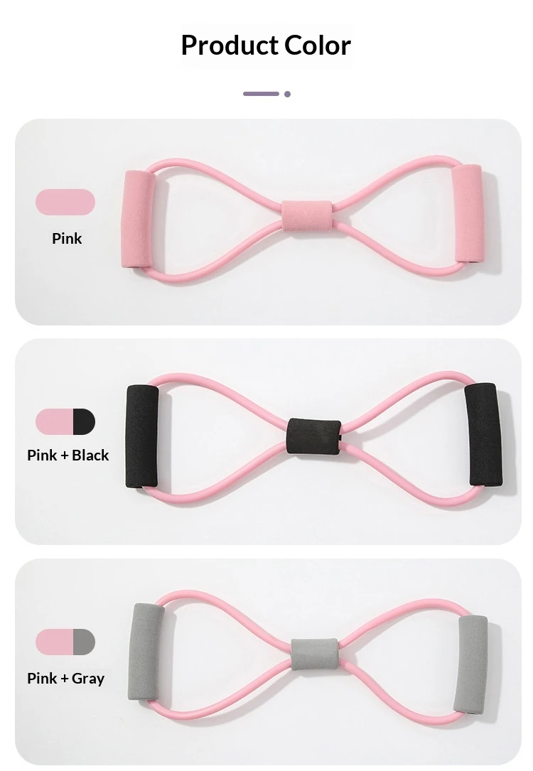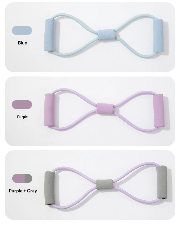 Couleurs : Bande de résistance rose en forme de 8 (6 x 9 mm), tube de résistance rose avec poignée noire (6 x 9 mm), tube de résistance rose avec poignée grise (6 x 9 mm), bande de résistance bleue en forme de 8 (6 x 9 mm), bande de résistance violette en forme de 8 (6 x 9 mm), tube de résistance violet avec poignée grise (6 x 9 mm).
